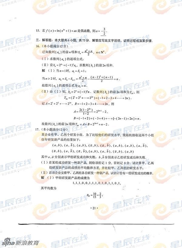 首发2014年湖南高考数学(文)真题及答案(图片版)(7)