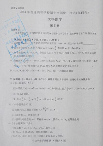 首发2014年江西高考数学(文)真题及答案(图片版)(3)