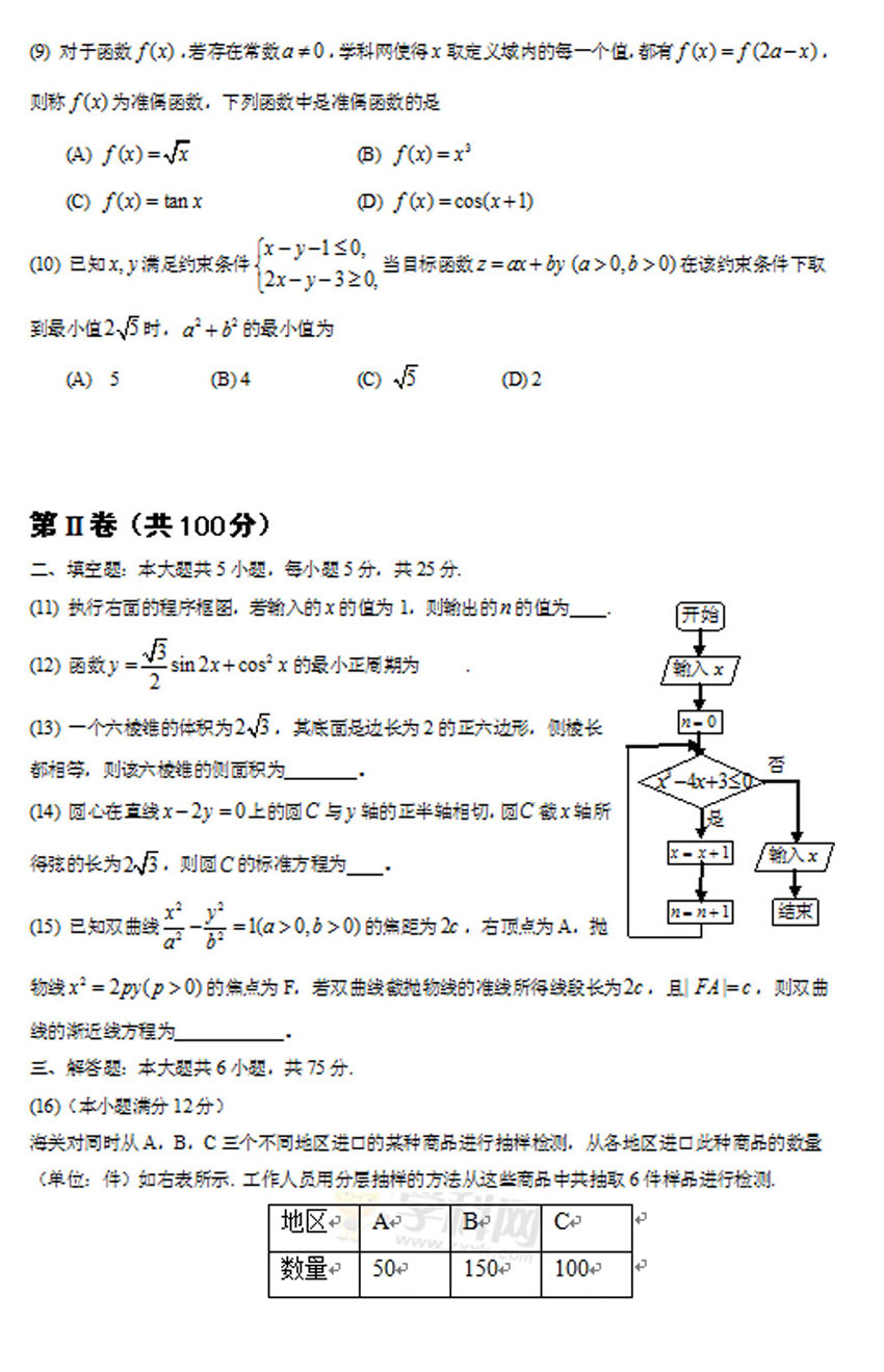 2014年山东高考数学(文)真题及答案首发(清晰版)(3)