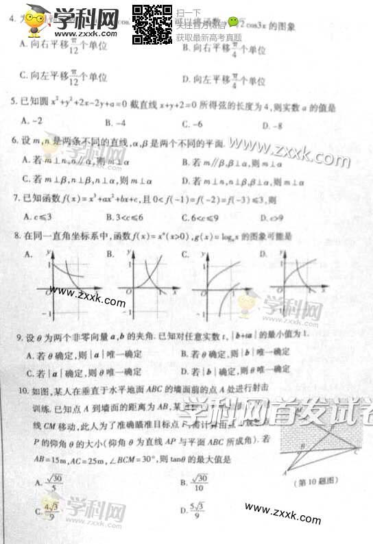 2014年浙江高考数学文科真题及答案(图片版)(2)