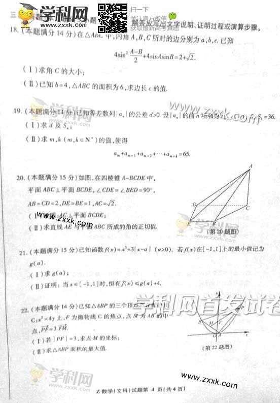 2014年浙江高考数学文科真题及答案(图片版)(4)