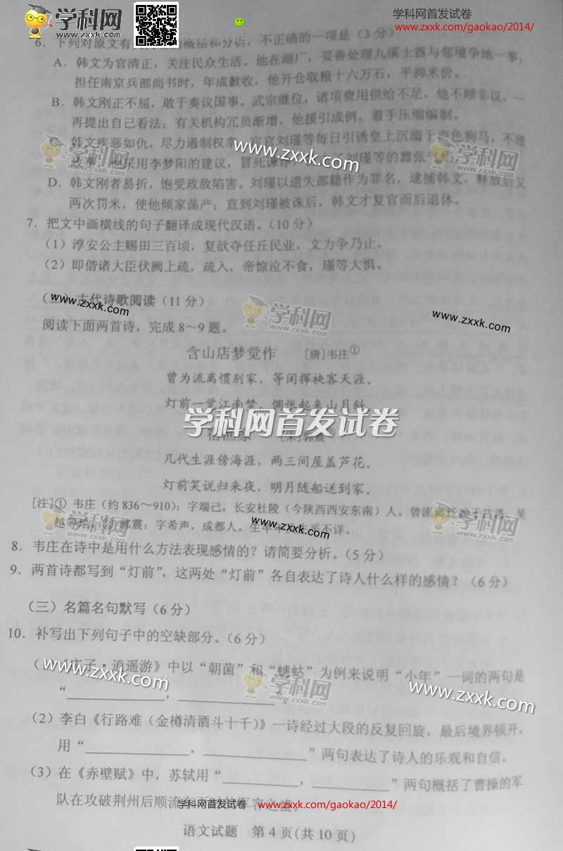 2014年高考新课标全国卷Ⅱ语文试题及答案(图片版)(4)