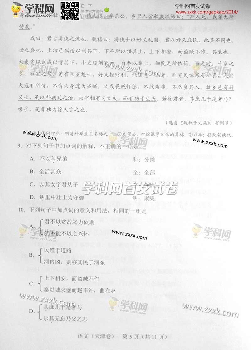 2014年天津高考语文试题(图文版)(5)