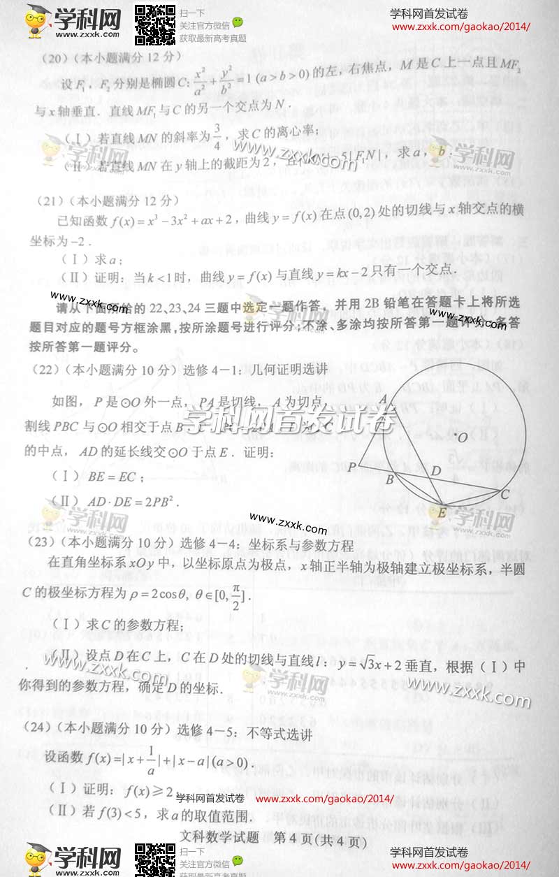 2014年海南高考数学文科真题及答案(图文版)(2)