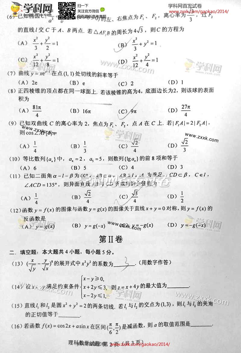 2014年全国高考大纲理数卷及答案(图文版)(2)