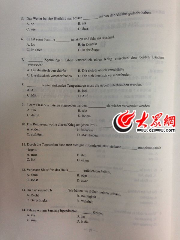 2014年山东高考德语试题及答案(高清版)(2)