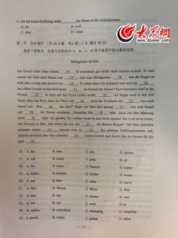 2014年山东高考德语试题及答案(高清版)(3)