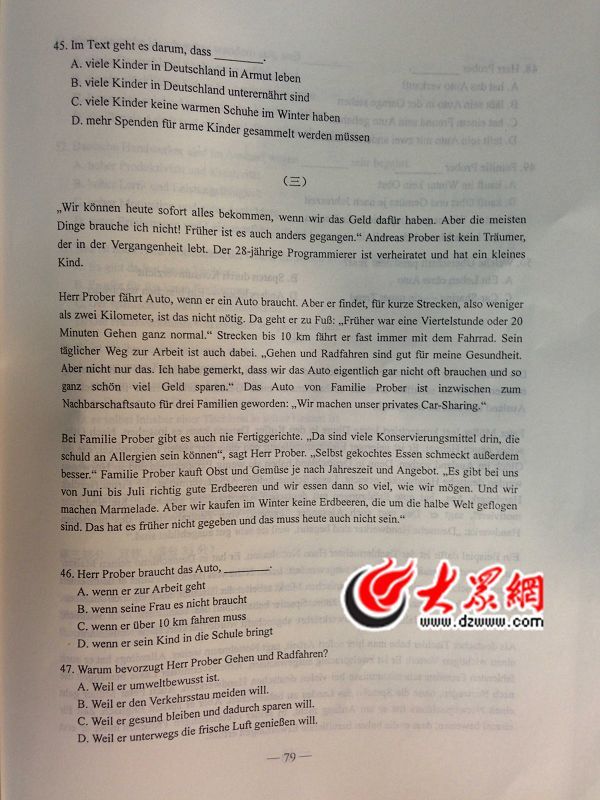 2014年山东高考德语试题及答案(高清版)(7)