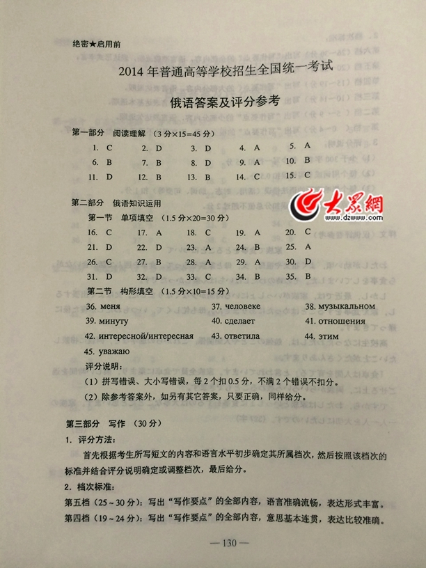 2014年山东高考俄语试题及答案(图片高清版)(10)