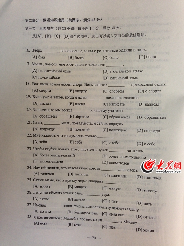 2014年山东高考俄语试题及答案(图片高清版)(7)
