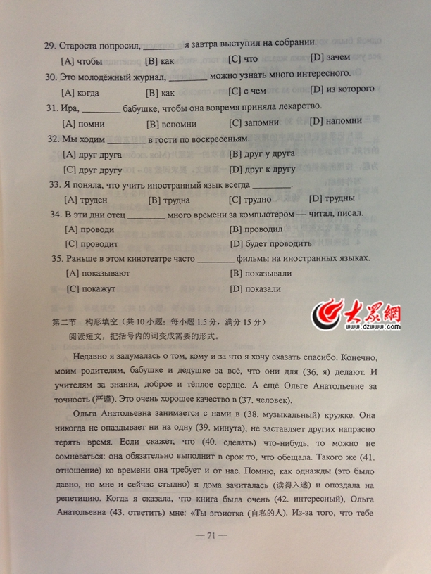 2014年山东高考俄语试题及答案(图片高清版)(8)