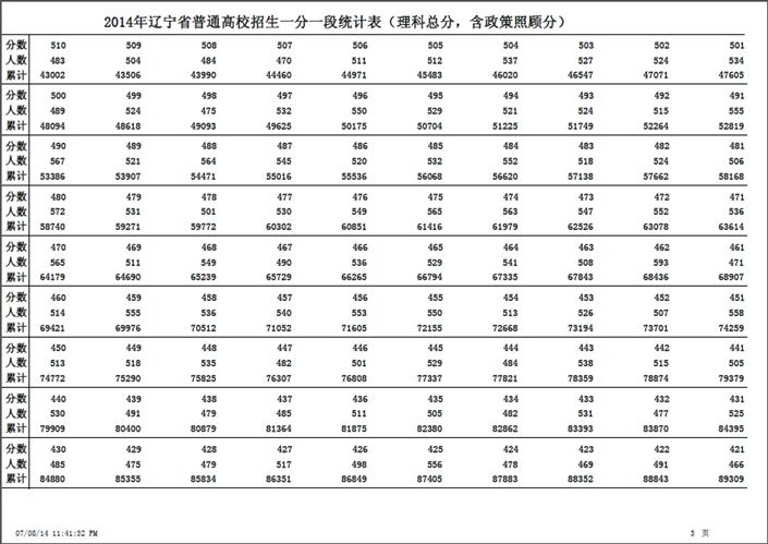 2014年辽宁高考理科一分一段统计表(含照顾分)(3)