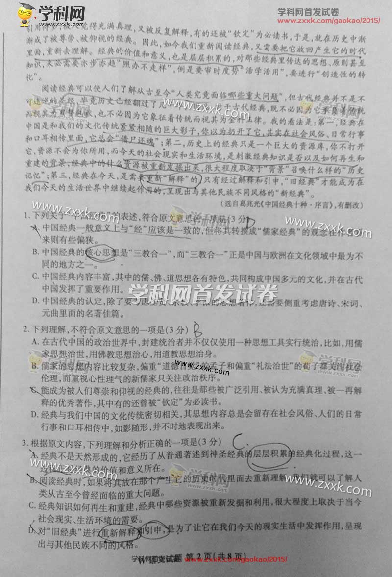 2015年安徽高考语文试题及答案解析(2)