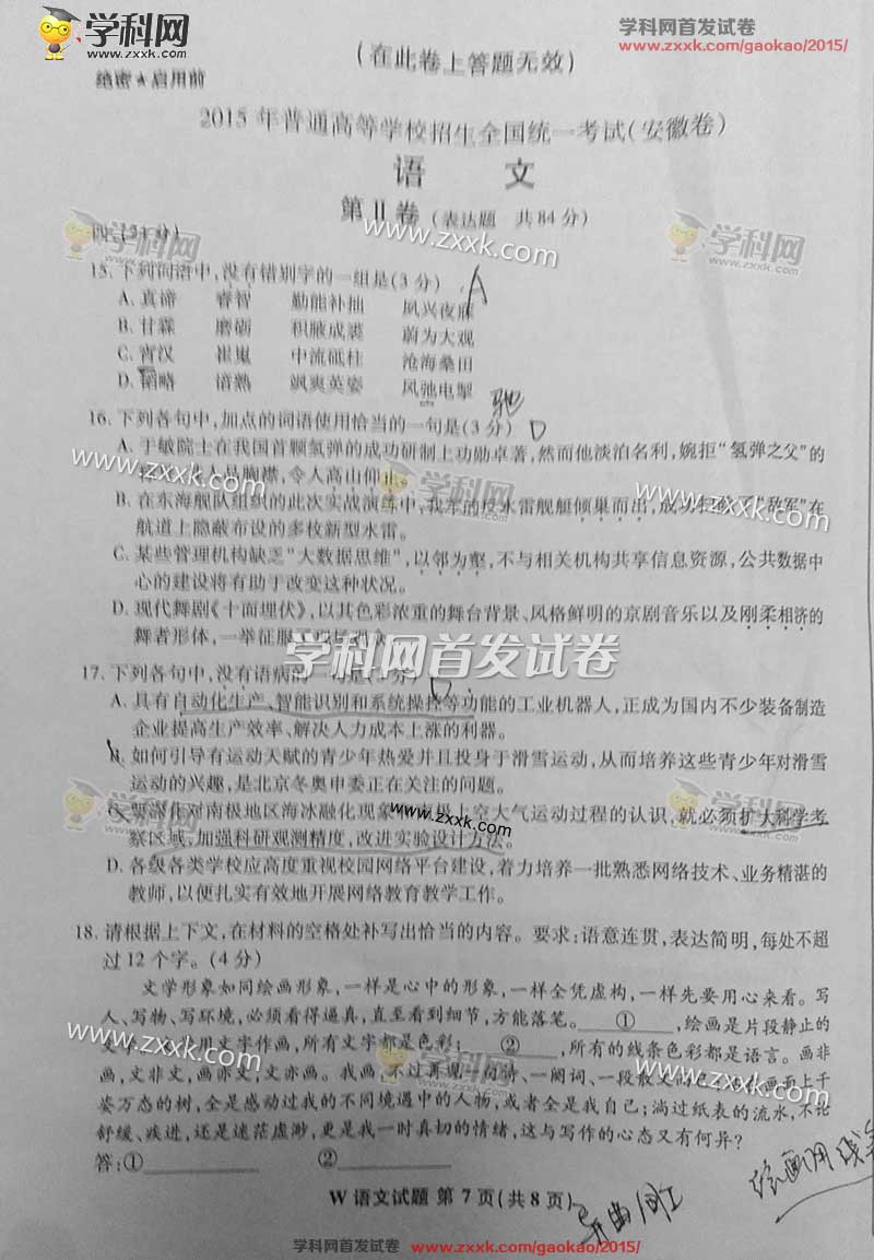 2015年安徽高考语文试题及答案解析(7)