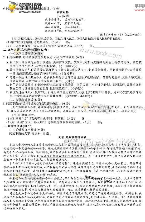 2015年福建高考语文试题及答案解析(2)