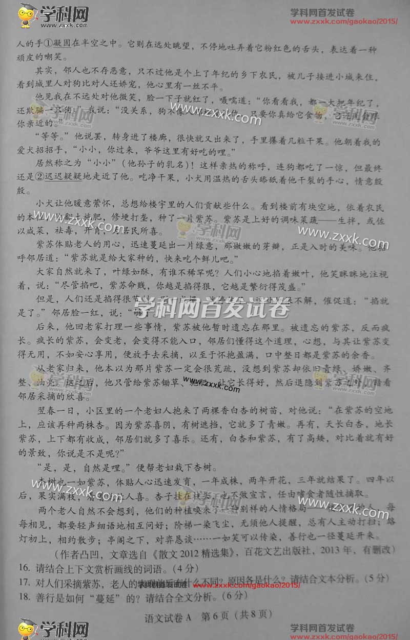 2015年广东高考语文试题及答案解析(6)