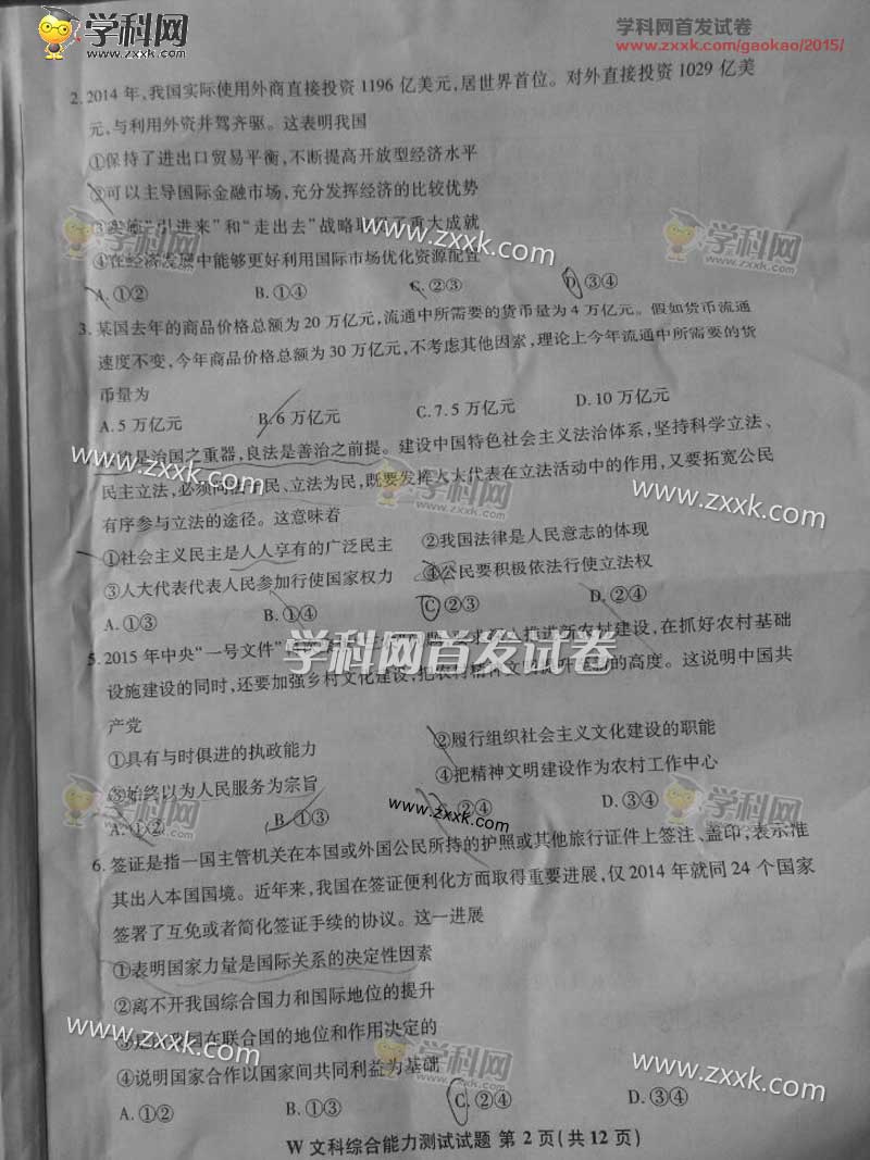 2015年安徽高考文科综合试题及答案解析(2)