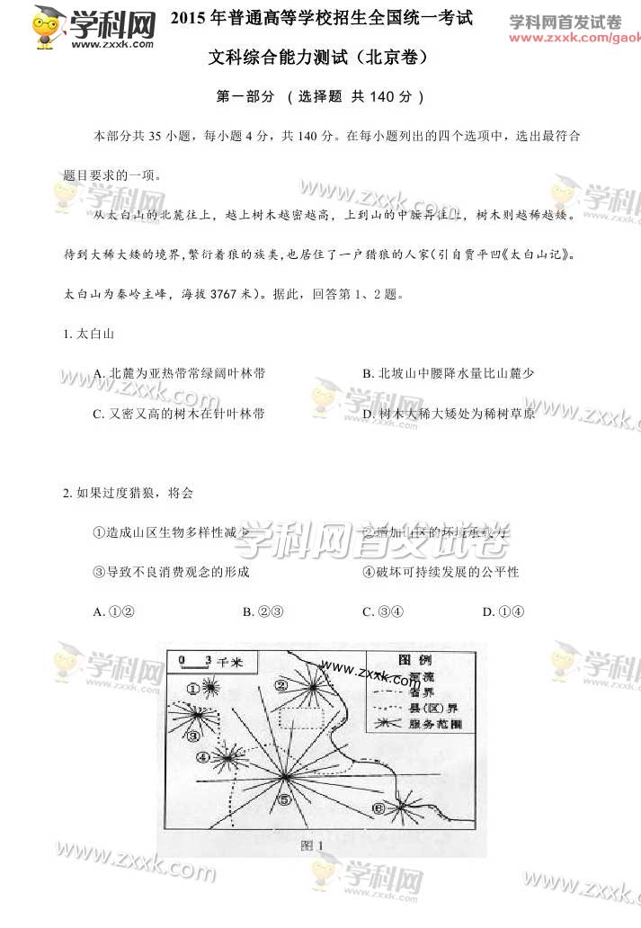 2015年北京高考文科综合试题及答案解析