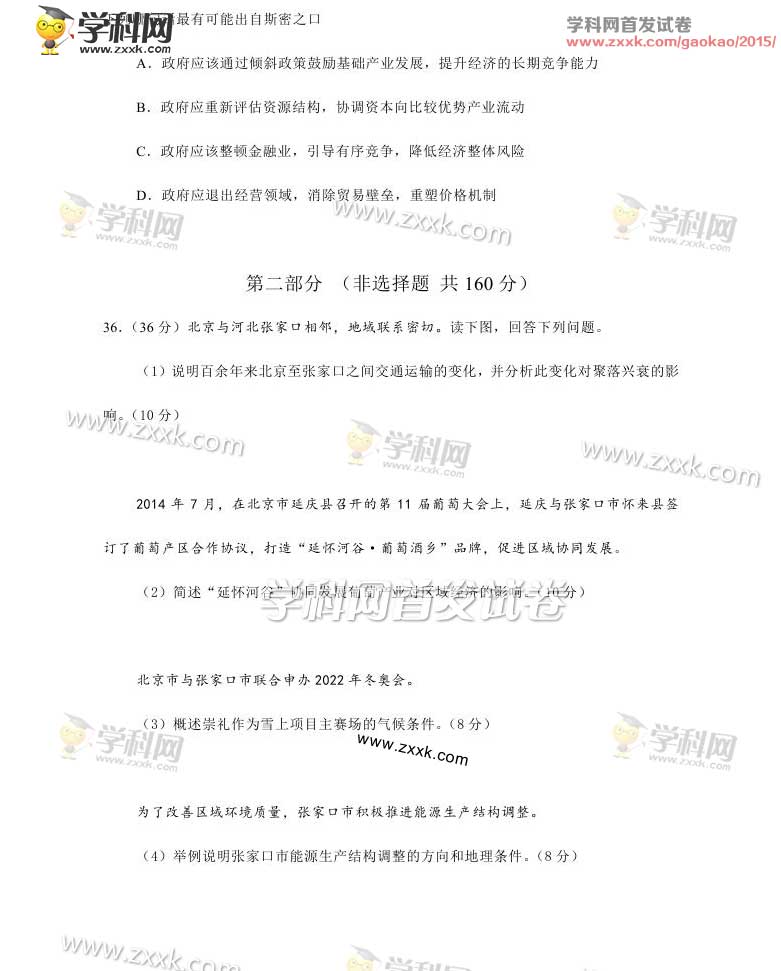 2015年北京高考文科综合试题及答案解析(13)