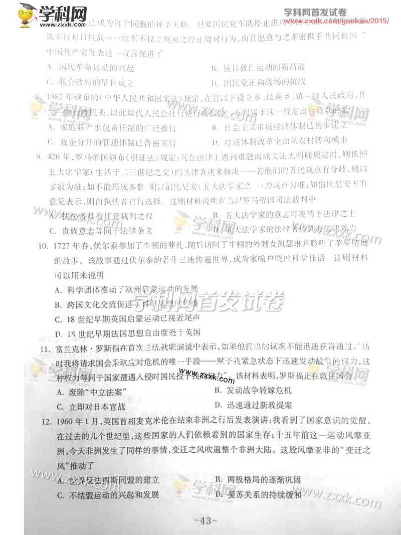 2015年重庆高考文科综合试题及答案解析(7)
