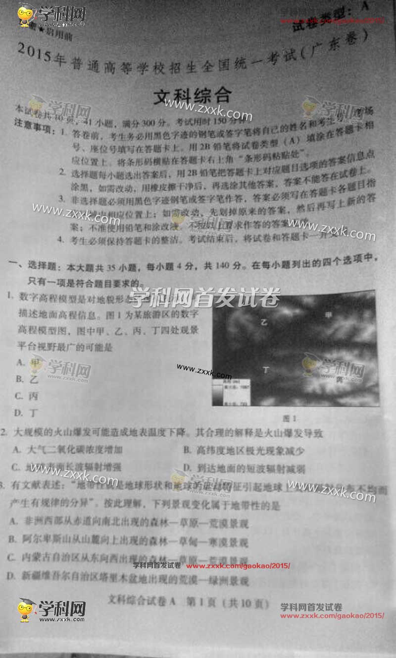 2015年广东高考文科综合试题及答案解析
