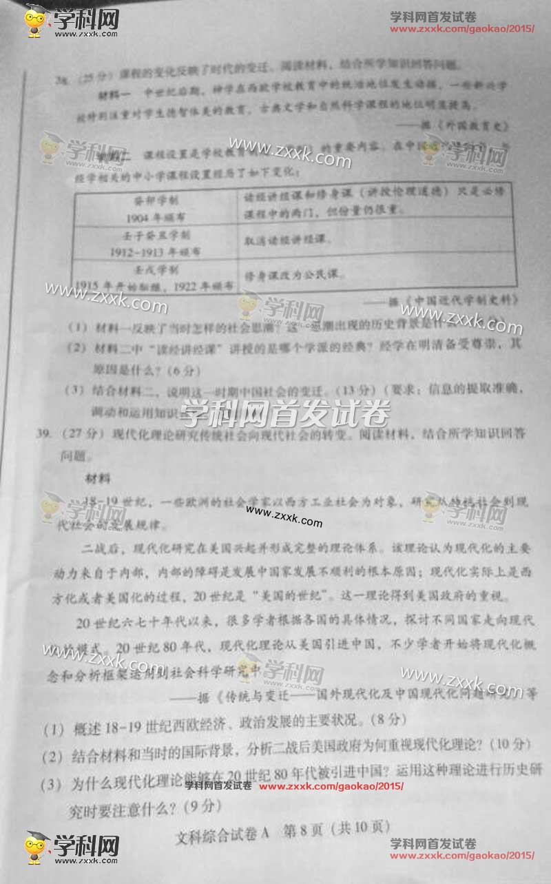 2015年广东高考文科综合试题及答案解析(8)