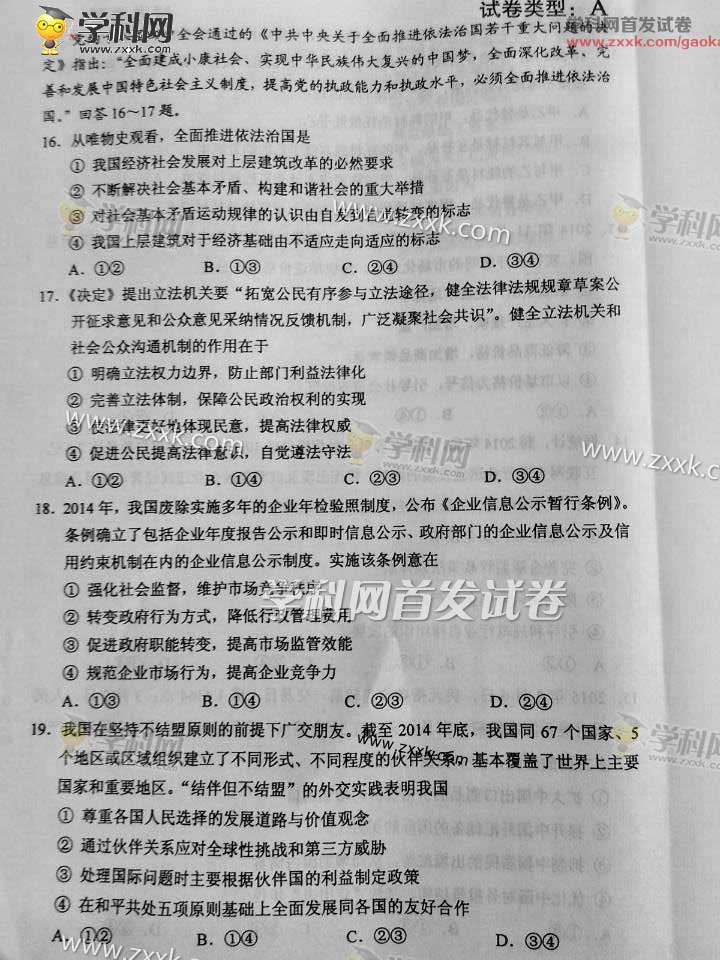 2015年湖南高考文科综合试题及答案解析(5)