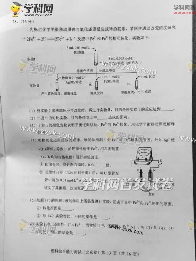 2015年北京高考理科综合试题及答案解析(13)