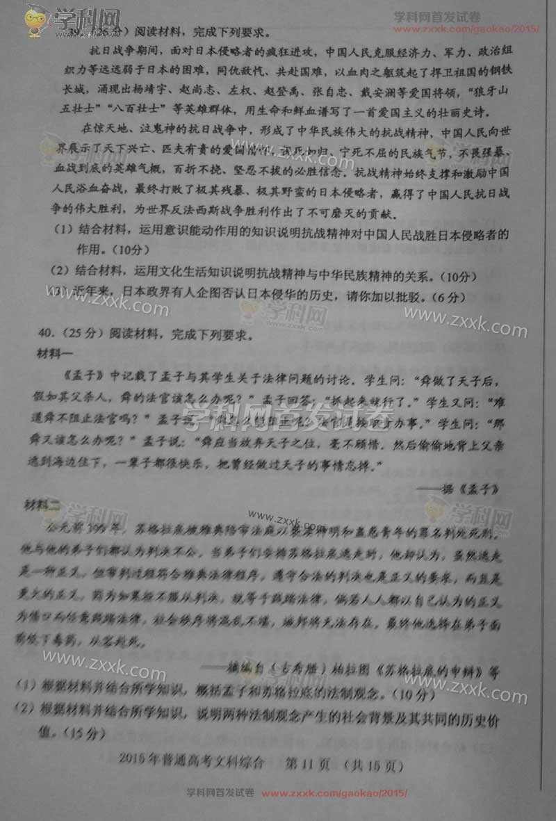 2015年新课标Ⅱ文科综合全国卷及答案解析(11)
