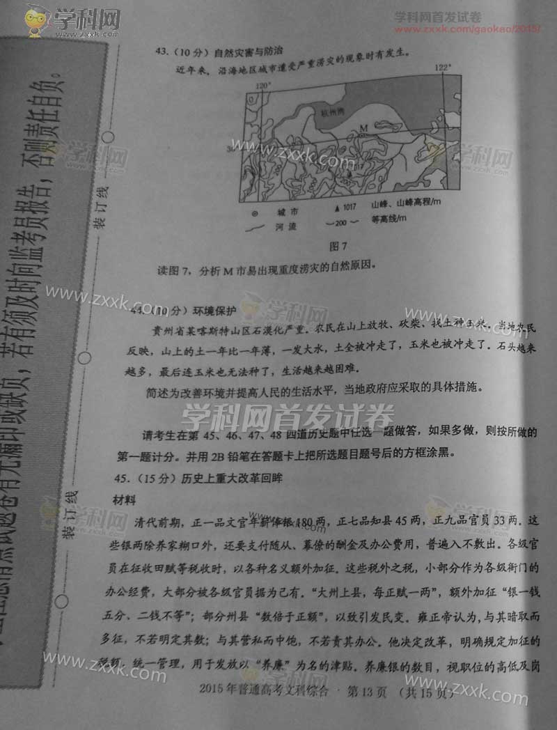 2015年新课标Ⅱ文科综合全国卷及答案解析(13)