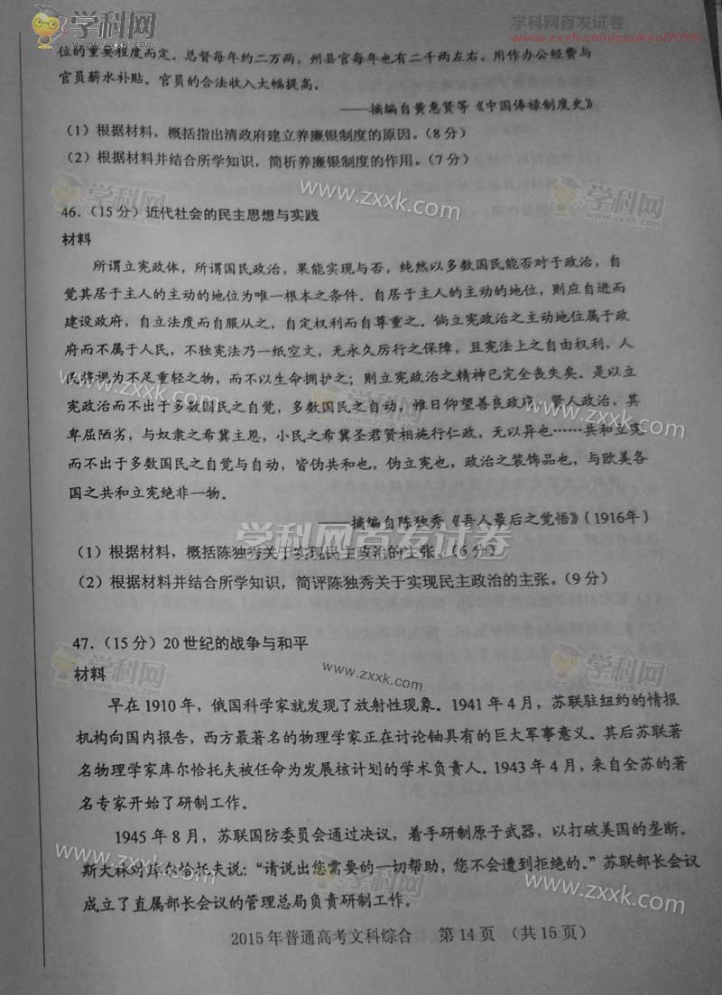 2015年新课标Ⅱ文科综合全国卷及答案解析(14)