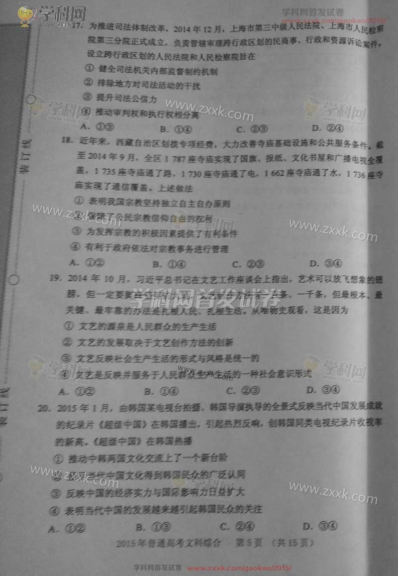 2015年新课标Ⅱ文科综合全国卷及答案解析(5)