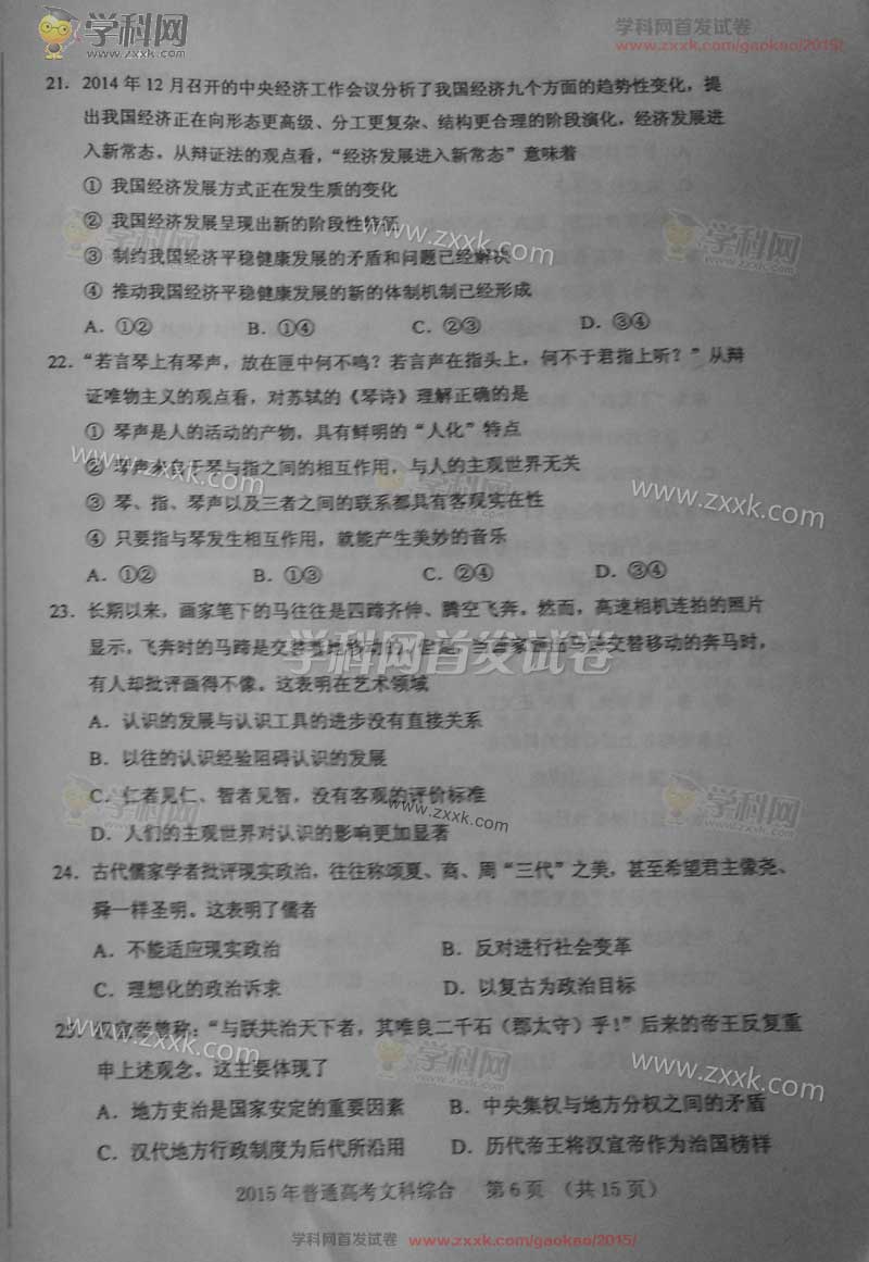 2015年新课标Ⅱ文科综合全国卷及答案解析(6)