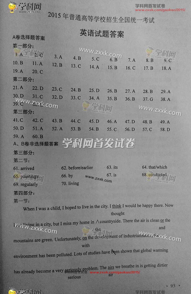 2015年新课标全国卷1英语试题及答案解析(14)