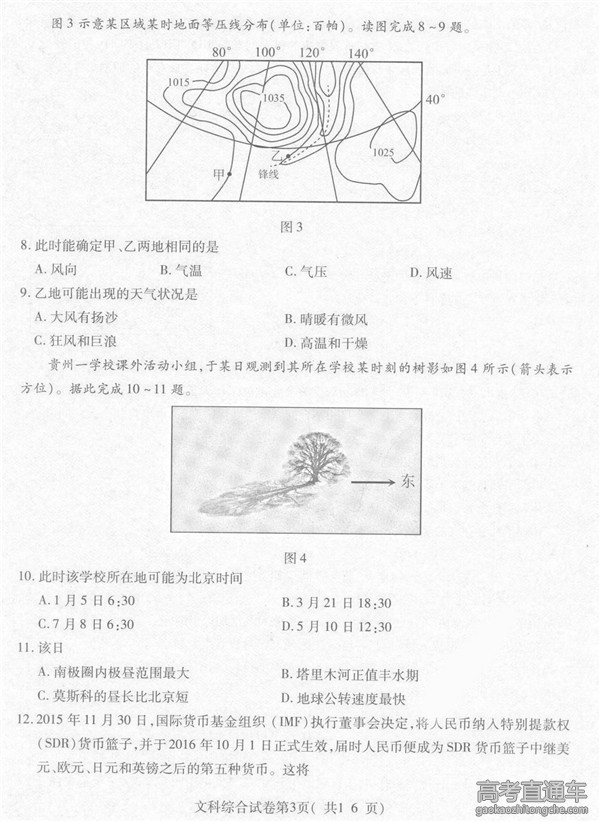 2016年贵州一模文综试题(3)