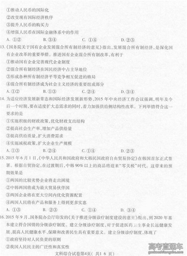 2016年贵州一模文综试题(4)