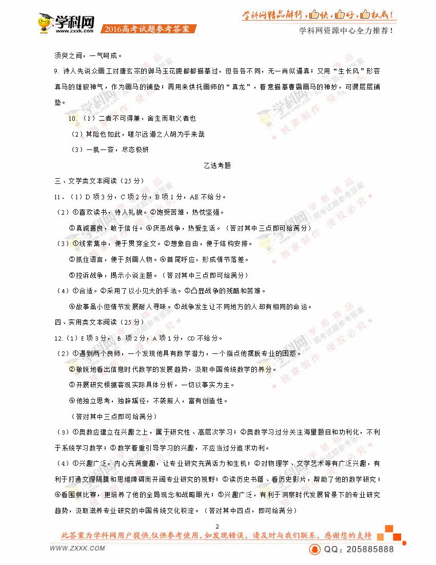 2016年甘肃高考语文试题及答案(全国卷2图文)(11)