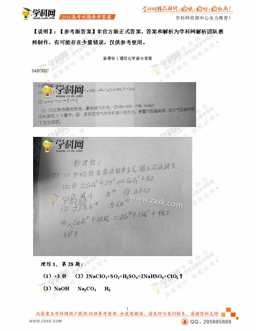 2016年福建高考理综真题及答案(17)