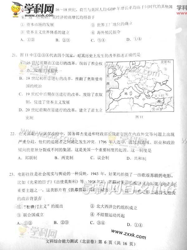 2016年北京高考文综真题及答案(6)