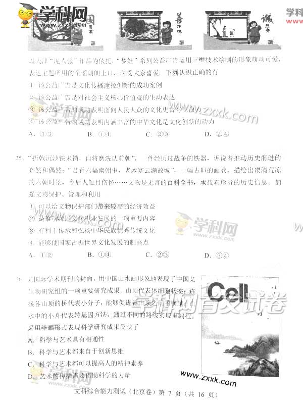 2016年北京高考文综真题及答案(7)