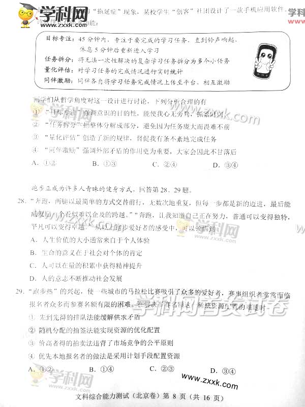 2016年北京高考文综真题及答案(8)