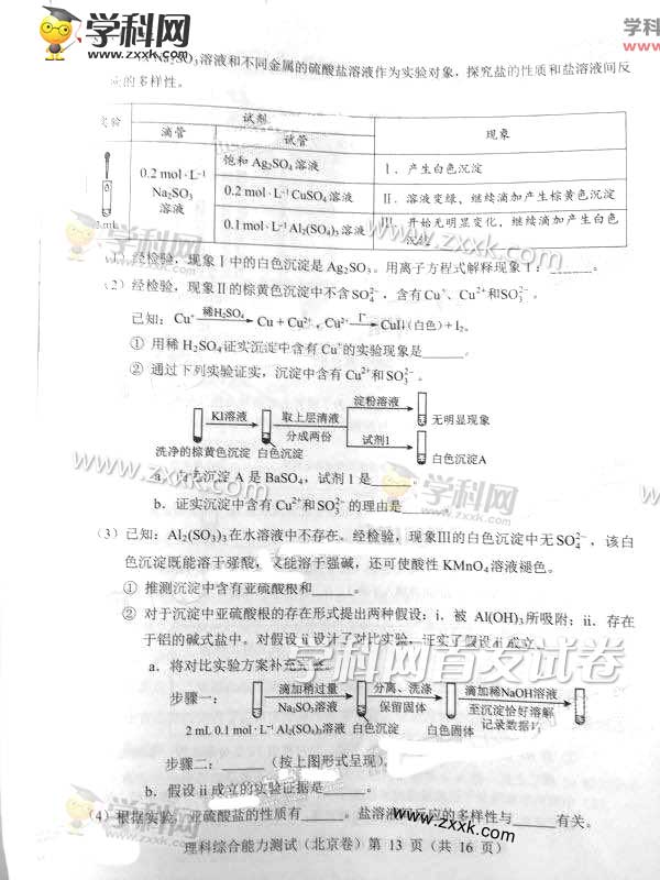 2016年北京高考理综真题及答案(13)
