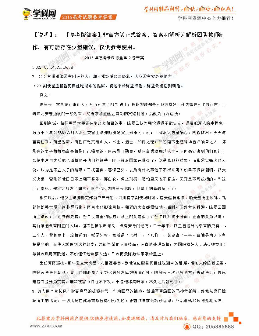2016年新疆高考语文真题及答案(全国卷2图文)(10)