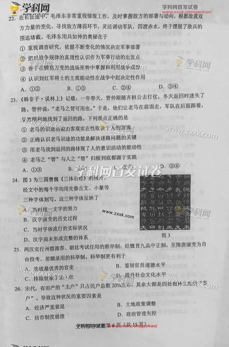 2016年宁夏高考文综真题及答案(6)