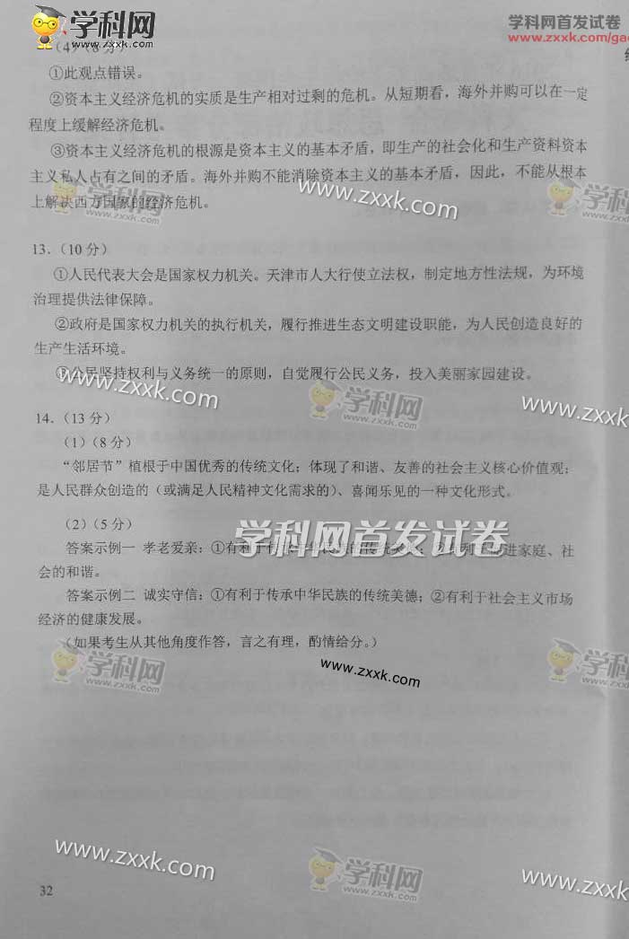 2016年天津高考文综真题及答案(8)