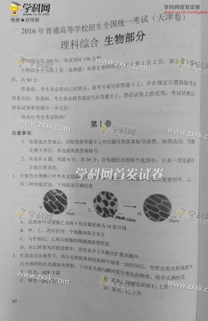 2016年天津高考理综真题及答案(21)