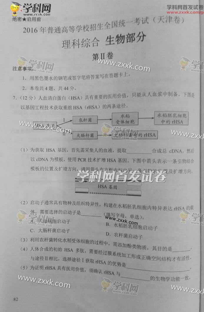 2016年天津高考理综真题及答案(23)