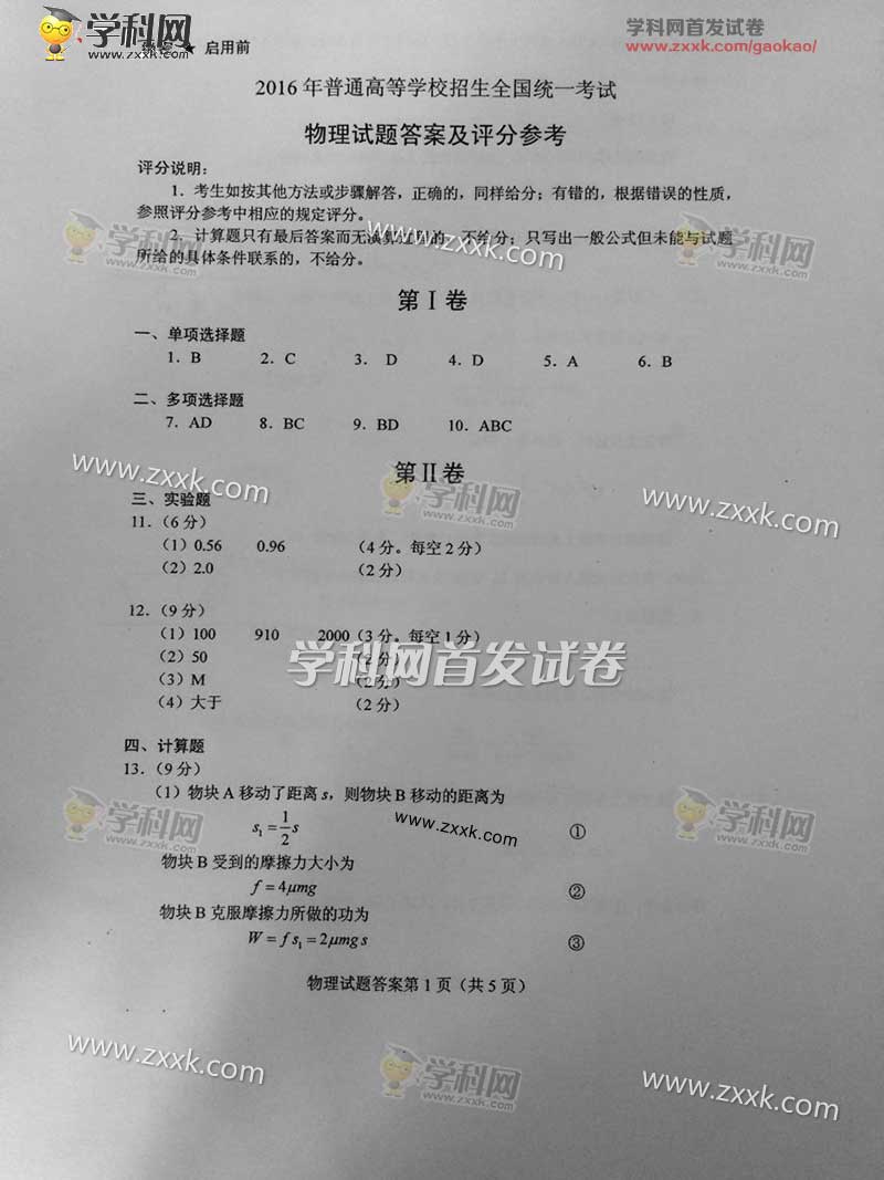2016年海南高考物理真题及答案(8)