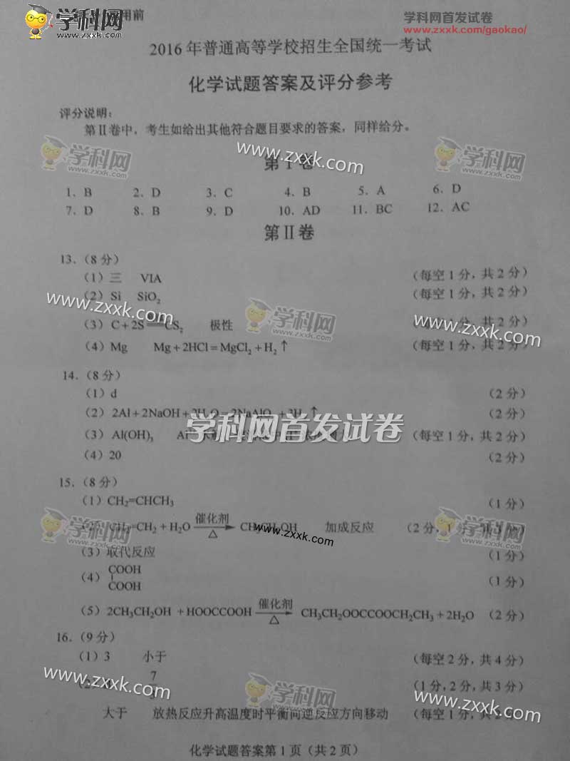 2016年海南高考化学真题及答案(7)