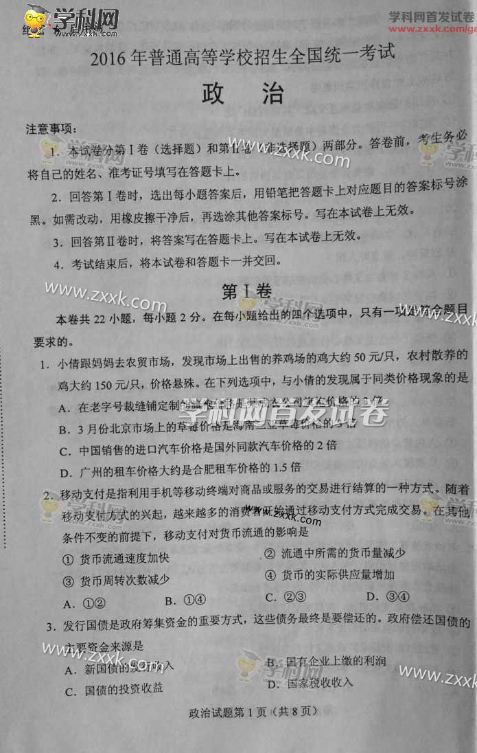 育路高考网为各位考生整理了“2016年海南高考政治真题及答案”,参加海南高考的考生注意了,2016年海南高考政治试题及答案将在高考之后发布,届时育路高考网将在第一时间公布海南高考政治试题及答案,各位考生可在育路高考网2016年全国高考试题及答案解析汇总页中进行查询。请各位考生随时关注。最后祝各位考生取得一个好成绩。